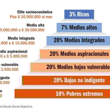 La Argentina actual refleja una sociedad fragmentada: tres realidades poco articuladas, con profundas brechas territoriales, educativas y laborales. La pobreza estructural, la informalidad y la precariedad laboral persisten, afectando especialmente al 30% de la población más vulnerable.